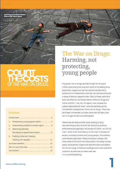 A new report demonstrating the harms caused to young people by the global drug war will be released on Friday 20 November, United Nations Universal Children’s Day, by the ‘Count the Costs of the War on Drugs’ initiative. ‘The War on Drugs: Harming not protecting young people’ will be launched at the Drug Policy Alliance Conference in Washington DC.