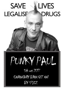 Paul Larner AKA Punky Paul, a homeless man who tragically died from a suspected drug overdose last week is being remembered on a mural that was unveiled a week ago in Stokes Croft. The mural reads: ‘Save lives now – legalise drugs’. Paul now joins 17 images of bereaved people holding up signs representing those we have lost because of bad drug policy: ‘my brother’, ‘my friend’, ‘my son’ and ‘me.’ All of the families believe that had drugs been legally controlled and regulated these deaths could have been avoided.