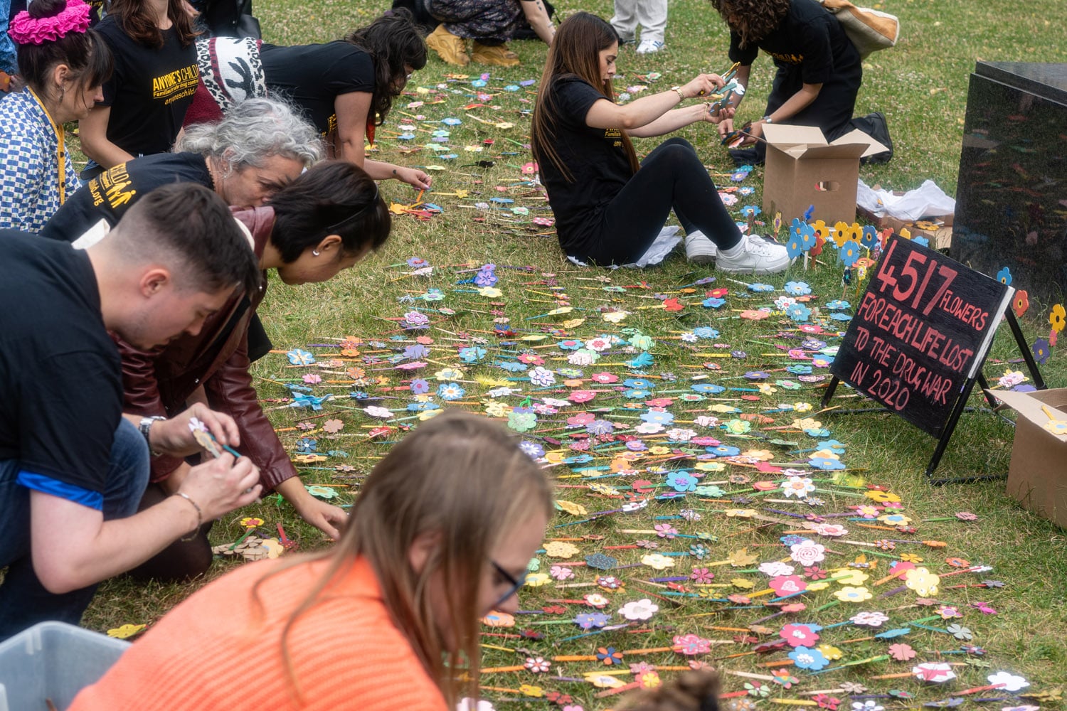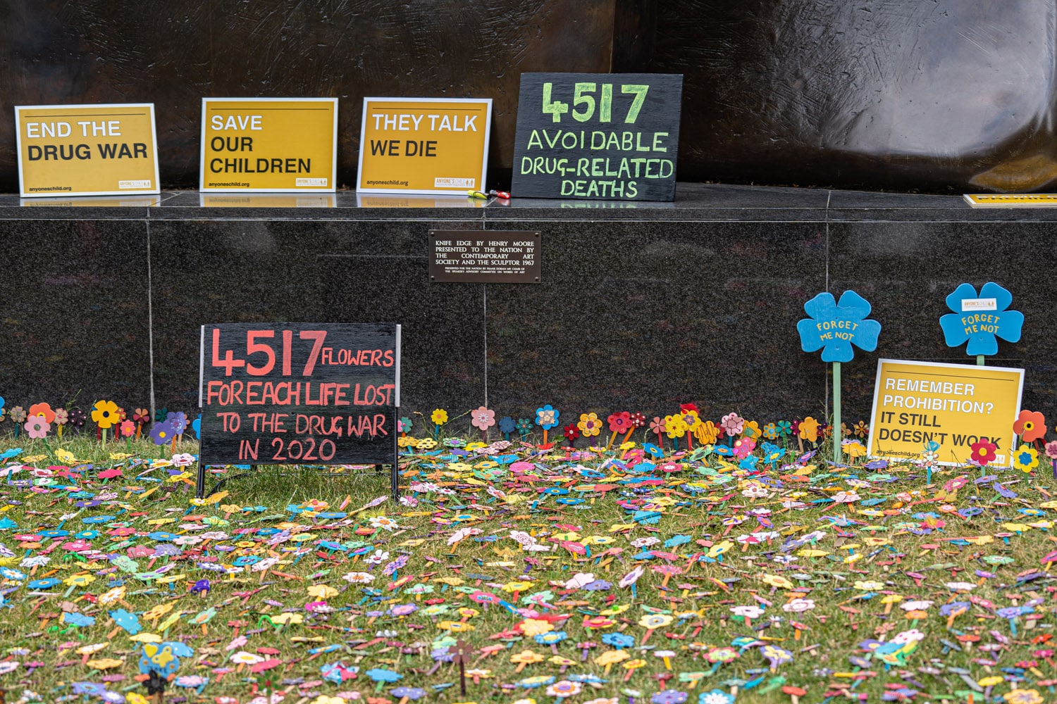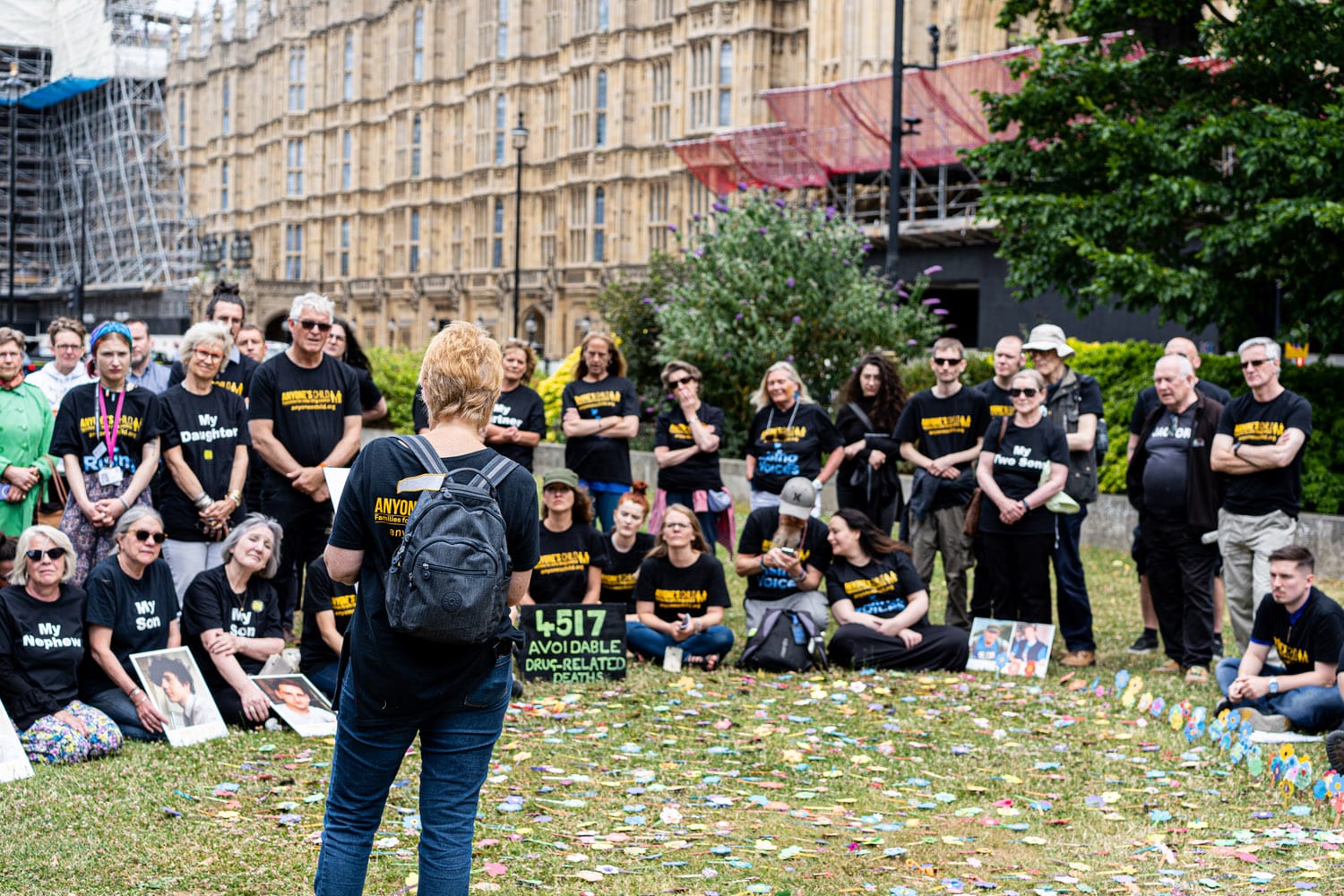 As Revd Jon Canessa said during his speech at college green, hope has two beautiful daughters; anger and courage – anger at the way things are and courage to see that they needn’t be this way. This dichotomy of hope was most poignantly evoked in the 4,517 forget-me-not flowers which laid on the ground at college green, one for each life lost to the drug war in 2020. On the coach from Bristol, I got the chance to meet several activists, many of whom have lost a loved one, a son, daughter, spouse, friend, colleague. Many wore t-shirts with labels such as “my son” or “my partner”. This is the purpose of the Anyone’s Child campaign – to present the human faces and lived experiences behind each statistic.