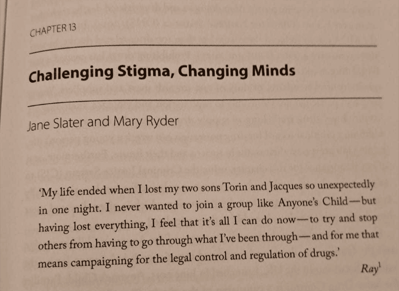 Our chapter, titled ‘Challenging stigma, changing minds: the role of families in drug policy reform’ explores the stigmatisation and discrimination towards people who use drugs and their families, as experienced by many of the Anyone’s Child members.